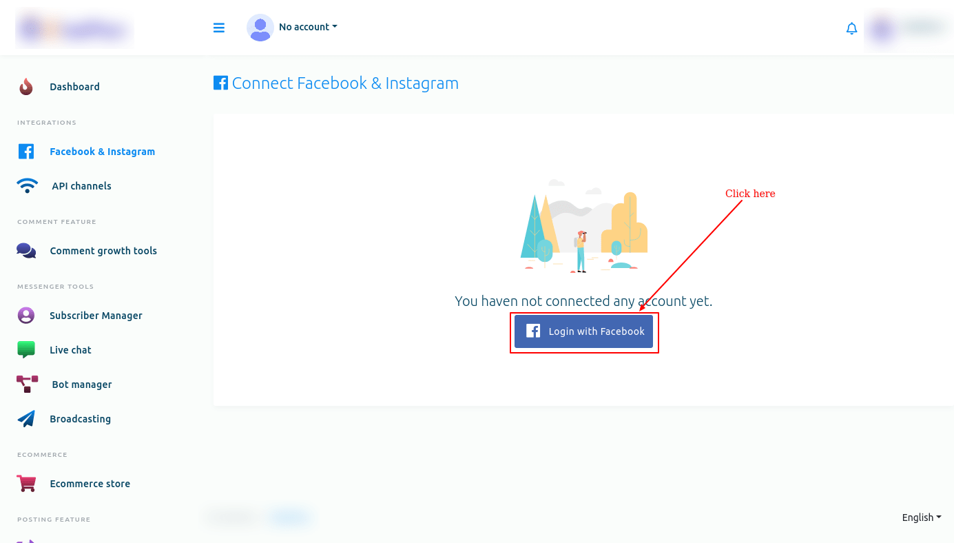 Instantly, a page called connect Facebook and Instagram will appear with a button called Login with Facebook.