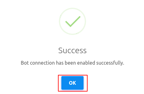 And a successful message — Bot connection has been enabled successfully — will appear.
