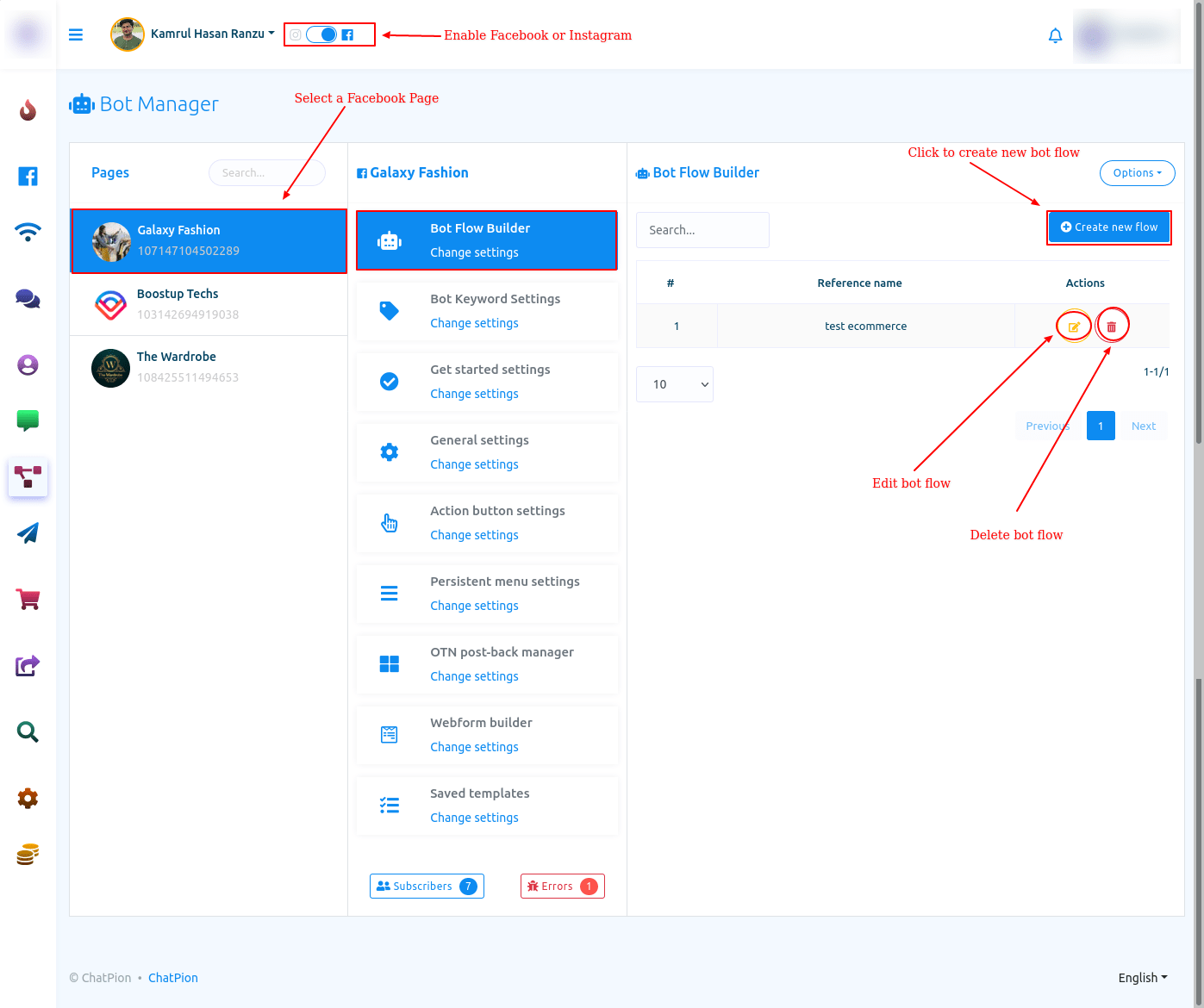 In this blog, I will show you how to create Facebook Messenger bot and Instagram DM bot with ChatPion Flow Builder. Please follow the instructional blog step by step to create an interactive Facebook Messenger bot or Instagram DM bot.