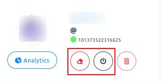 By clicking on the power button, you can disable the bot connection. Just as you click on the power button, a modal will appear with Cancel and OK buttons. Click on the OK button and the bot will be disabled.